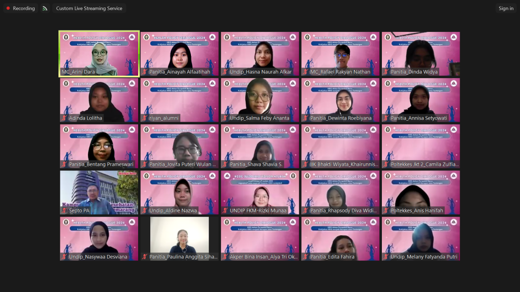 Semarang 3 Agustus 2024, Calon Forum AKK 2025 melaksanakan Bincang-Bincang Kebijakan Kesehatan (Health Policy Dialogue) dengan tema “KRIS dalam Perspektif Baru: Kebijakan KRIS menjadi Harapan atau Tantangan”. Webinar ini dihadiri oleh 304 peserta yang terdiri dari mahasiswa dan masyarakat umum di Seluruh Indonesia. Acara dibuka oleh Dr. Budiyono, S.KM., M.Kes selaku dekan Fakultas Kesehatan Masyarakat […]