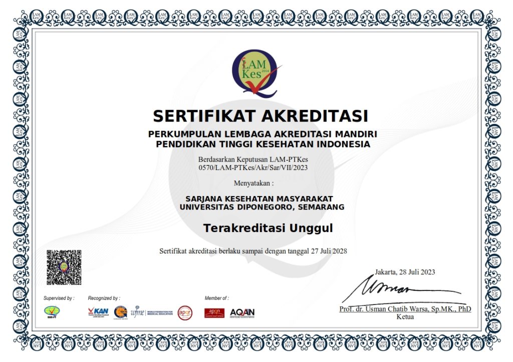 | 13:00-14:40 | Penulisan Ilmiah | 5C | 2 SKS | 74 | - dr. Ari Udijono, M.Kes. (196408021991031001) - Naintina Lisnawati, S.K.M., M.Gizi. (H.7.199009272018072001) - Dr. dr. Siti Fatimah, M.Kes. (196106221992032001) - Dr. drh. Dwi Sutiningsih, M.Kes. (197203081998022001) - Farid Agushybana, S.KM., DEA., Ph.D. (197008131995121001) | - B303 (38) |