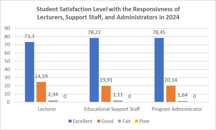 Student Satisfaction Level with the Responsivness of Lecturers, Support Staff, and Administrators in 2024